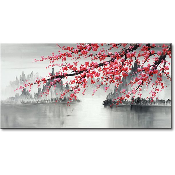 Traditional Chinese Painting Hand Painted Plum Blossom Canvas Wall Art Modern Black And White Landscape Oil Painting For Living Room Bedroom Office Decoration 48x24 Inch Walmart Com